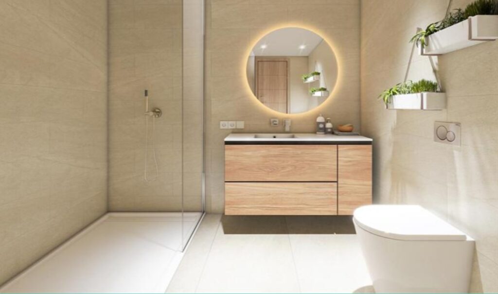 Badeværelser med naturlige trædetaljer og gulvvarme