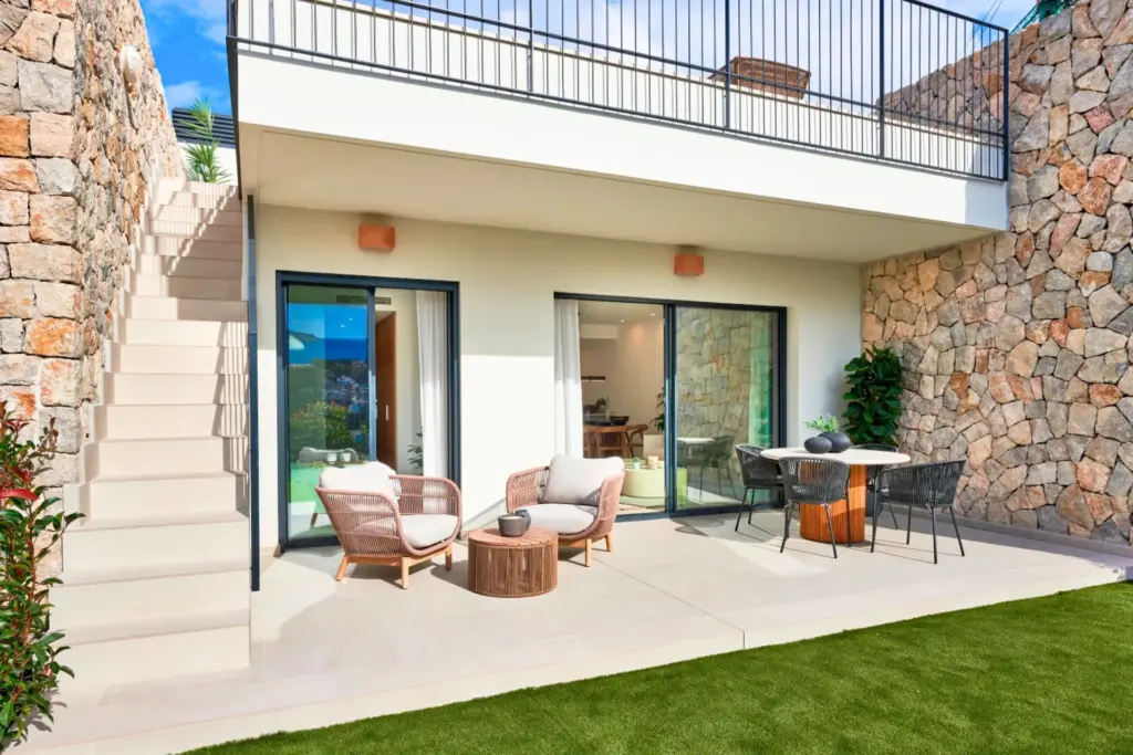 Projektet består af kun 20 moderne lejligheder, alle designet med fokus på lys, enkelhed og det ægte middelhavsliv. Her får du et hjem, hvor arkitektur og omgivelser går hånd i hånd – med store vinduer, naturlige materialer og åbne planløsninger, der trækker lyset helt ind i boligen.