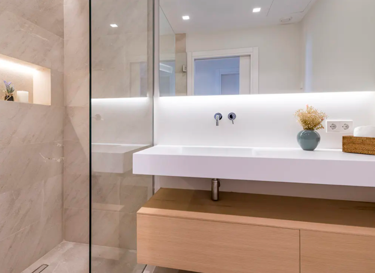 Indretningen i Casa Terraza er skabt til at understøtte en livsstil i ro, balance og æstetik. Alt er gennemtænkt – fra materialevalg til lysindfald – med respekt for det mallorcinske håndværk og en moderne sans for komfort.