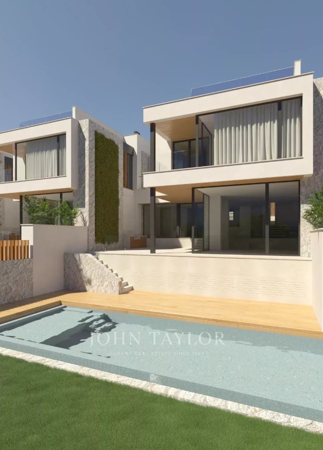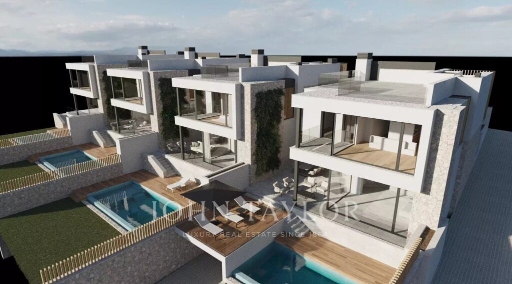 The villa is part of a small, private community of just four homes, all offering sea views, private gardens and an architecture inspired by the modern Mediterranean style – with stone facades, green vertical elements and warm natural tones.