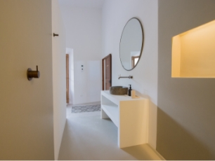 Huset er renoveret med respekt for lokal arkitektur og materialer, men med en moderne fortolkning, der gør det både tidløst og komfortabelt. De lyse rum, de naturlige stenelementer og de store vinduer skaber en følelse af rummelighed og forbindelse til omgivelserne.